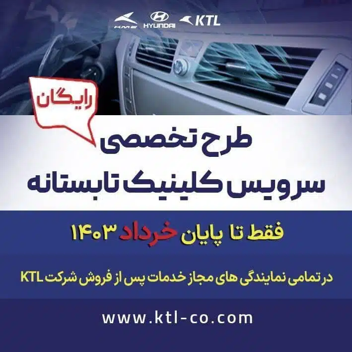 مجله خودرویی ایران: شرکت KTL به عنوان ارائه دهنده خدمات پس از فروش خودروهای هیوندای، طرح تخصصی سرویس کلینیک تابستانه رایگان خودرو را از ۱۹ الی ۳۱ خرداد ماه برگزار می کند.