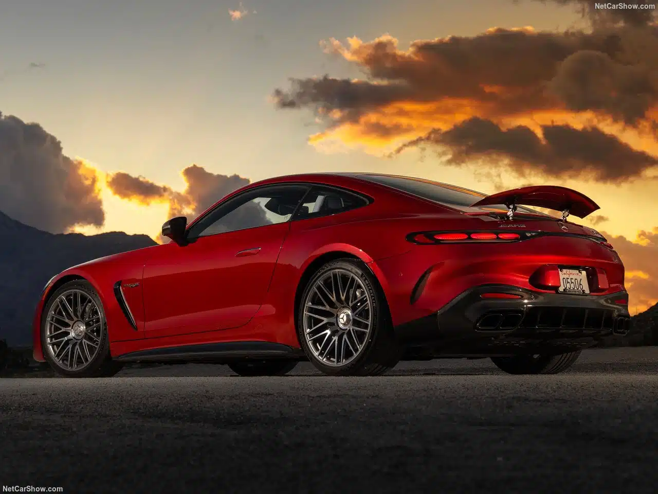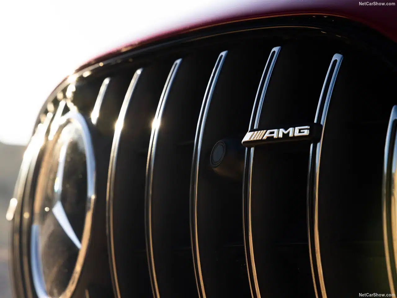 فاصله بین دو محور بلند، برآمدگی های کوتاه و شیشه جلوی شیب دار AMG GT جدید، ظاهری جذاب و قدرتمند را به AMG GT جدید ارائه می کند. در حالی که قوس چرخ های حجیم و رینگ های آلیاژی AMG همسطح با بدنه به جذبه آن اضافه می کنند.. خطوط عقب و مسیر عریض نمایانگر عرض کوپه است. یک اسپویلر عقب به طور یکپارچه در درب صندوق و چراغهای LED صاف و افقی عقب به خوبی در قسمت عقب خودرو تعبیه شده و نمای زیبایی به آن بخشیده است.