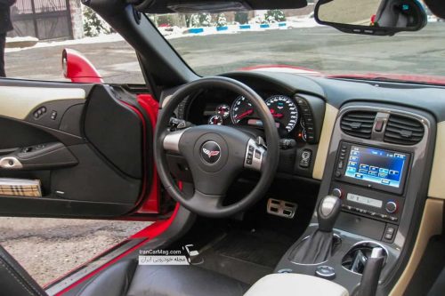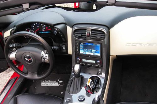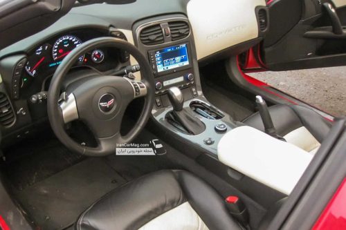 نحوه باز شدن درهای شورولت کوروت C6 کاملا متفاوت است. یعنی باید برای چند لحظه انگشت خود را در پشت دستگیره قرار دهید. سنسور با تشخیص گرمای دست در را باز می کند. کابین بیشتر از آنکه حس لوکس بودن را تداعی کند القا کننده حس اسپرت بودن است و شما را وسوسه می کند تا هرچه زودتر پای خود را برروی پدال گاز فشار دهید. قبل از آنکه پیشرانه ۸ سیلندر ۶٫۲ لیتری را روشن کنم به کمک دوستم آشنایی جزئی با دکمه ها و کنترل های روی کنسول مرکزی پیدا می کنم.