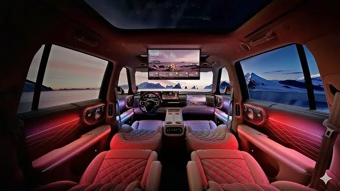 • کابین دیجیتال با نمایشگرهای بزرگ: نمایشگر مرکزی ۲۷.۱ اینچی 5K و مانیتور ۱۵.۶ اینچی برای سرنشین جلو، همراه با صندلی‌های بی‌وزنی، یخچال کابین، و سیستم صوتی B&O – همگی نشان از استاندارد لوکس سطح جهانی دارند.