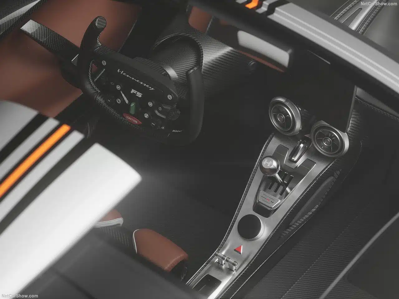 در کابین داخلی، شیفتر دنده آلومینیومی و فیبر کربنی به نمایش گذاشته شده و دقیقاً نزدیک به راننده قرار گرفته است تا تعویض دنده را تسهیل کند. شیفتر آن به گیربکس متصل است که از آلومینیوم ساخته شده است. این ترکیبی از نقاط تماس راننده و ارتباط کامل با ماشین آلات هایپرکار کاملاً با توجه وسواس گونه هنسی به جزئیات و بالاترین سطوح مهارت را خاطر نشان می شود.