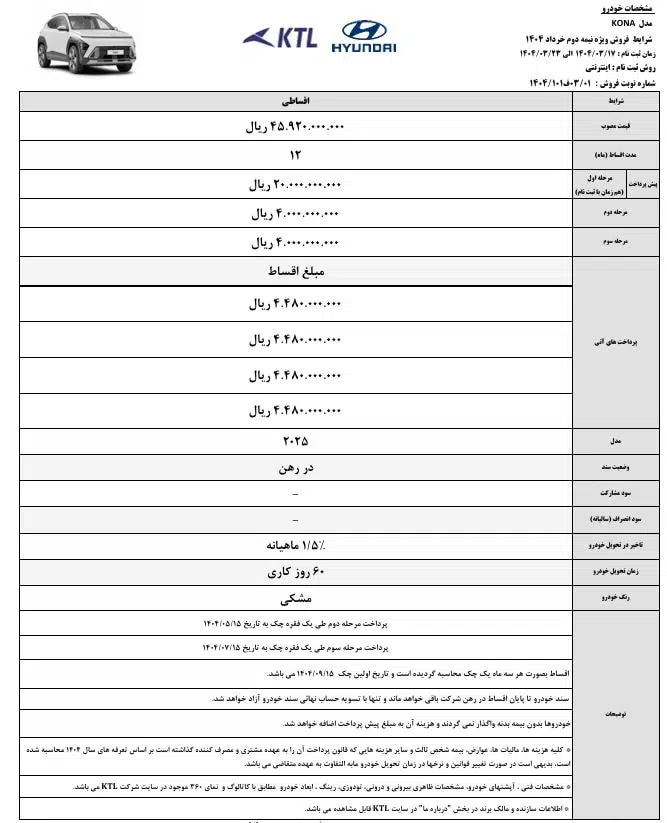 - شروع اقساط: از ۱۵ آذر ۱۴۰۴