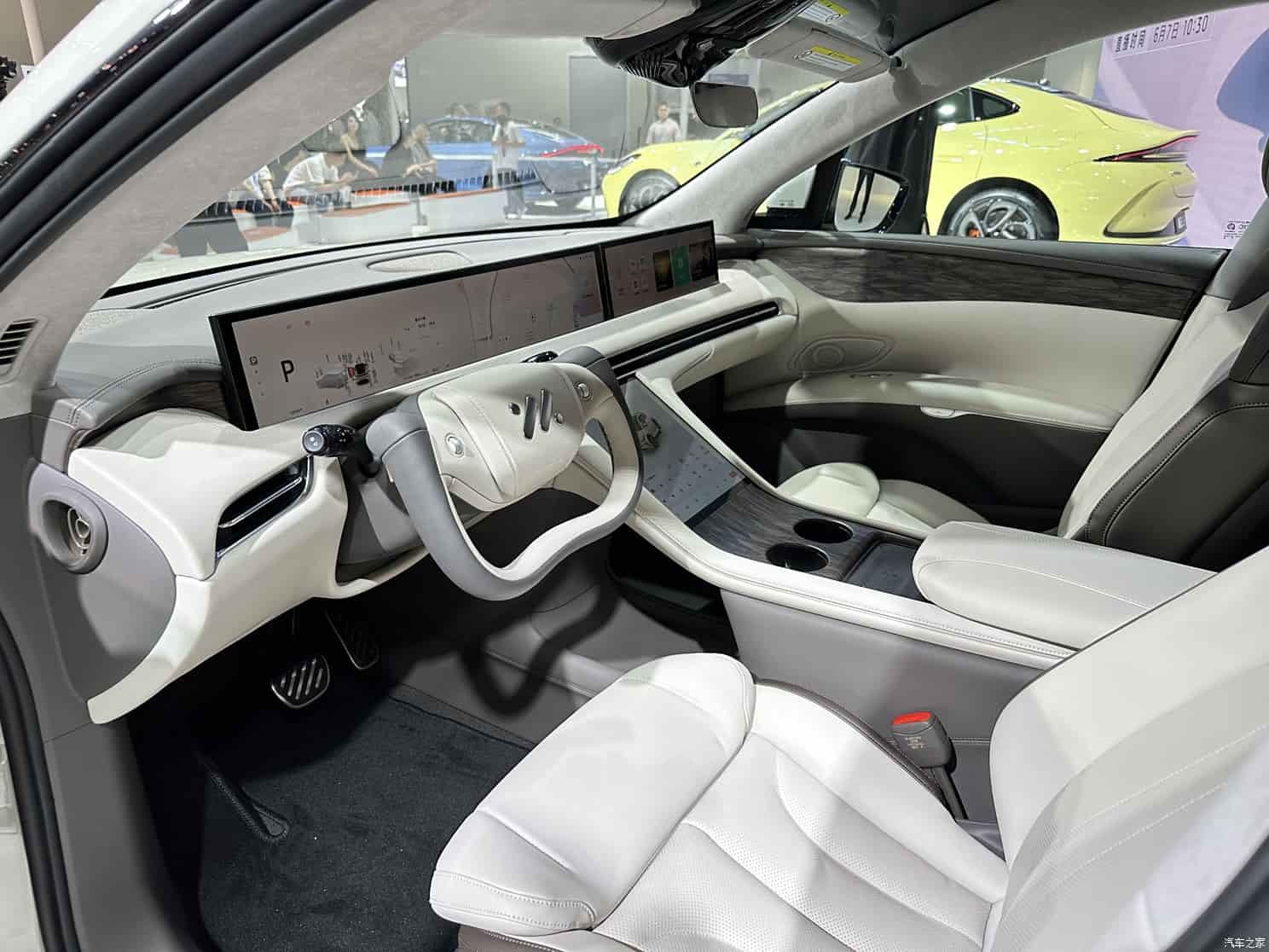 کابین IM LS7 Max از نظر طراحی دیجیتال، کاملاً آینده‌نگر است. فرمان نیمه‌دایره‌ای (Half Steering Wheel) شاید بحث‌برانگیز باشد، اما به‌وضوح نشان‌دهنده‌ی جسارت IM در طراحی است.