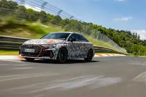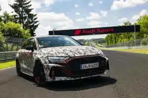 از سوی دیگر، آئودی اسپرت RS3 در آینده دارای همان موتور پنج سیلندر با قدرت 400 اسب بخار و گشتاور 500 نیوتن متر در اروپا خواهد بود و نسخه آمریکایی کمی بیشتراز 400 اسب بخار قدرت خواهد داشت. نمونه اولیه پیشتولید مورد استفاده برای رکوردشکنی، با لاستیکهای نیمه لغزنده پیرلی P Zero Trofeo R، سیستم ترمز سرامیکی 19 اینچی، سیستم تعلیق اسپرت RS با کنترل دمپر تطبیقی و تنظیمات شاسی جدید بهینهسازی شده بود.