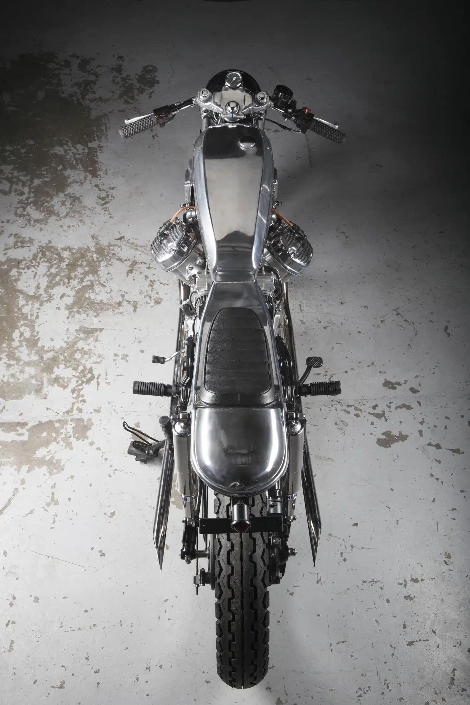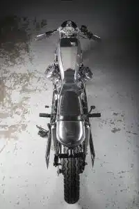 در بالای لوله فریم یک منحنی سفارشی برای صندلی قرار گرفته که با یک زین دو تکه روکش شده با چرم مشکی پوشیده شده است. پد صندلی پیلیون بالاتر از واحد اصلی قرار گرفته است. جلوی چراغ عقب دایرهای LED و پایه پلاک ساده با چراغهای راهنما یکپارچه شده اند. در کنار زین جدید روکش های جانبی دست ساز قرار دارند که یکسری از اتصالات و قطعات الکترونیکی موتورسیکلت را پنهان می کنند. همچنین لازم به ذکر است که ساب فریم برای قرار دادن یک بخش حلقه در پشت مجددا اصلاح شدخ.