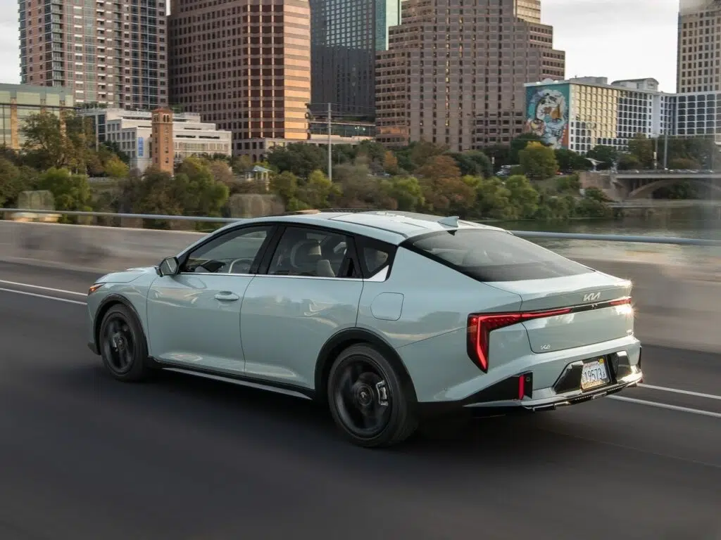 کیا K4 با طول ۱۸۵.۴ اینچ و عرض ۷۲.۸ اینچ، یکی از عریضترین سدانهای کلاس خودش محسوب میشه و فضای داخلی بزرگی داره. سرنشینان عقب از فضای پای ۳۸ اینچی و فضای سر ۳۷.۳ اینچی که از بهترینها در این کلاس محسوب میشن، بهره میبرن. چراغهای جلو و عقب LED استاندارد و عمودی که از پرچمدار کیا، EV9 الهام گرفته شده، جلوهای خاص به این مدل داده. دستگیرههای درِ عقب پنهان در ستون C، به ظاهر فستبک K4 تأکید میکنه و باعث جذابیت بیشتر نمای جانبی میشه. همچنین، صندوق عقب استاندارد و جادار این خودرو، ۱۴.۶ فوت مکعب ظرفیت بار داره که کارایی بالایی رو ارائه میده.