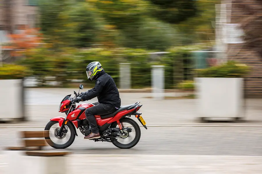 از نظر هندلینگ، CB125F بسیار چابک است، به شما امکان میدهد به راحتی در ترافیک حرکت کنید، فیلتر کنید و مانور دهید. ترمزگیری نرم است و با فشار مناسب، سریع متوقف میشود. این ترمزها اکنون مطابق مقررات جدید اتحادیه اروپا یا باید ABS داشته باشند یا CBS؛ که هوندا در این مدل از CBS استفاده کرده است.