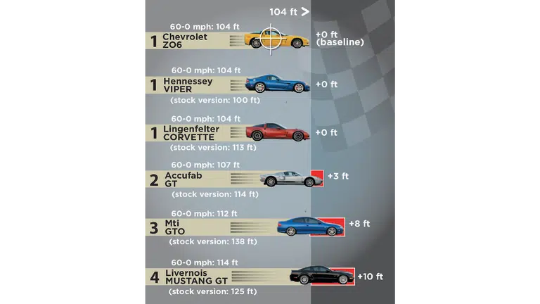 شتاب جی: ترمزهای موستانگ فشاری معادل ۱.۳ برابر جاذبه زمین (G) به راننده وارد کردند.