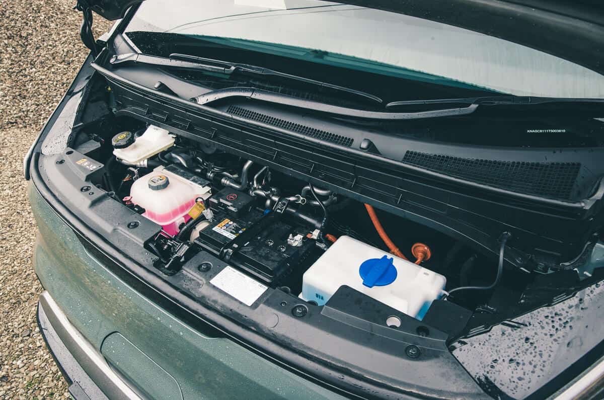 سرنشینان عقب از طریق درهای کشویی عقب وارد میشوند. این درها دسترسی در فضاهای تنگ را آسان میکنند، اگرچه احتمالاً کیا را مجبور کردهاند تا درگاه شارژ را در جلوترین نقطه خودرو قرار دهد. این به معنای پارک دنده عقب هنگام شارژ است.