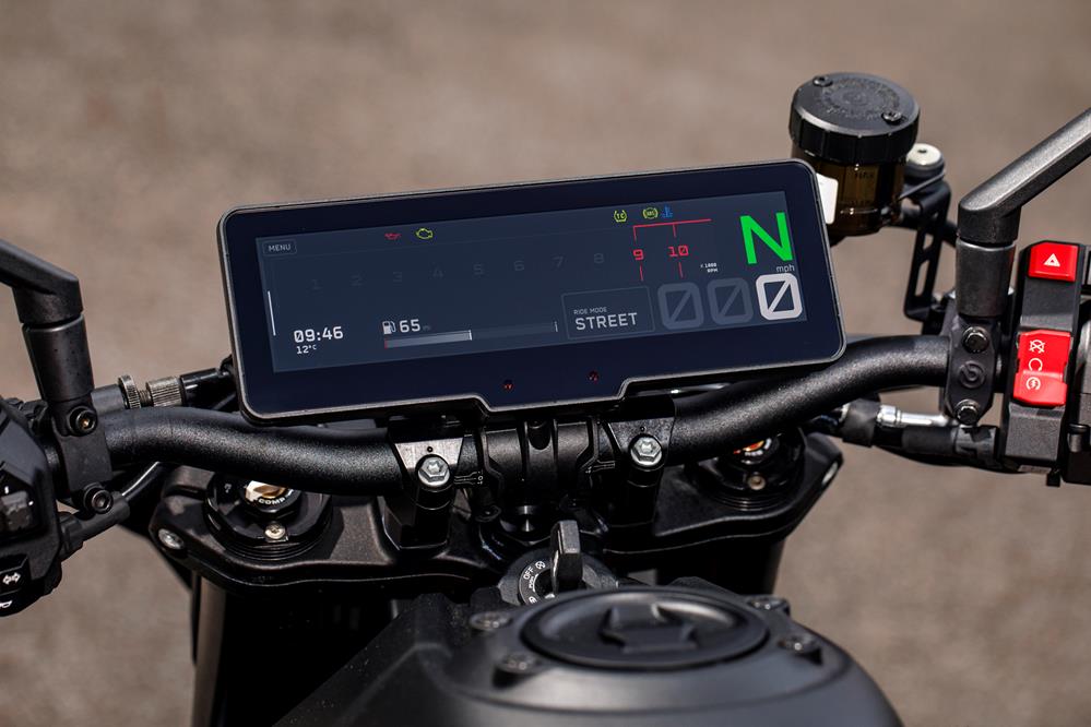 آیا یک نیکد اسپورت تهاجمی به یک صفحه نمایش بزرگ نیاز دارد؟ این موتورسیکلت به هر حال یکی دارد، مانند یک رولکس بزرگ به دستهها بسته شده است. صفحه نمایش ۸.۸ اینچی عریض TFT که از RC R گرفته شده، به راحتی در دید محیطی خوانده میشود و با صفحه لمسی یا دکمههای جدید نورپردازی شده به سادگی قابل هدایت است. این صفحه نمایش مملو از تصاویر رنگی، قابلیت اتصال و یک ناوبری داخلی است که برای کار کردن نیازی به اتصال بلوتوث به تلفن ندارد. همچنین نشان میدهد که تا فعال شدن «حالت دمو» و ناپدید شدن تمام کمکهای الکترونیکی چند مایل باقی مانده است. برای بازیابی همه آنها باید ۸۸۷.۰۸ پوند برای Tech Pack بپردازید.