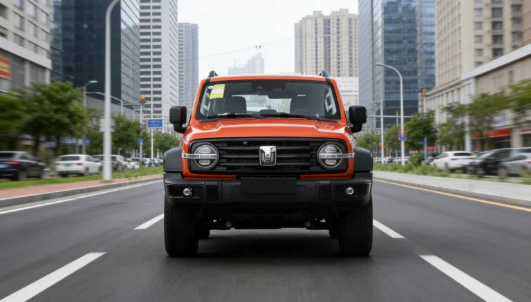 • ظاهر بیرونی: جلوپنجره مستطیلی، چراغ‌های LED دودی گرد، ریل‌های سقفی و درب عقب بازشونده جانبی با لاستیک زاپاس کامل، حس یک آفرودر واقعی را منتقل می‌کند.