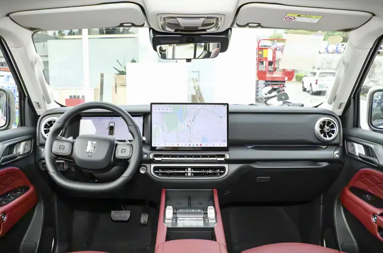 • کنترل‌های آفرود: حفظ دکمه‌های فیزیکی برای عملکردهای حیاتی آفرود مانند قفل دیفرانسیل‌ها، انتخاب حالت‌های رانندگی و ویژگی Tank Turn (که به راننده کمک می‌کند در فضاهای تنگ، شعاع دور زدن را به طرز چشمگیری کاهش دهد) نشان می‌دهد اصالت آفرودی فدای تکنولوژی نشده است.